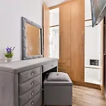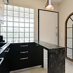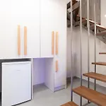 The apartment comes with an equipped kitchen, which has a refrigerator and a toaster.